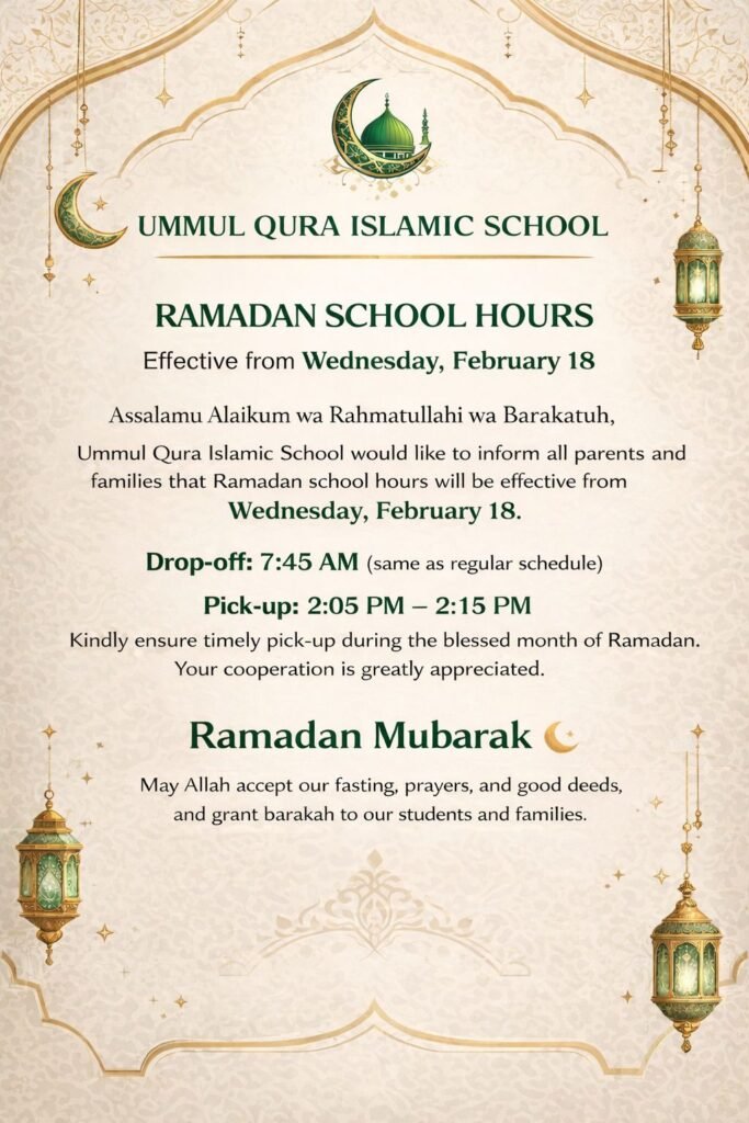 RAMADAN SCHOOL HOURS